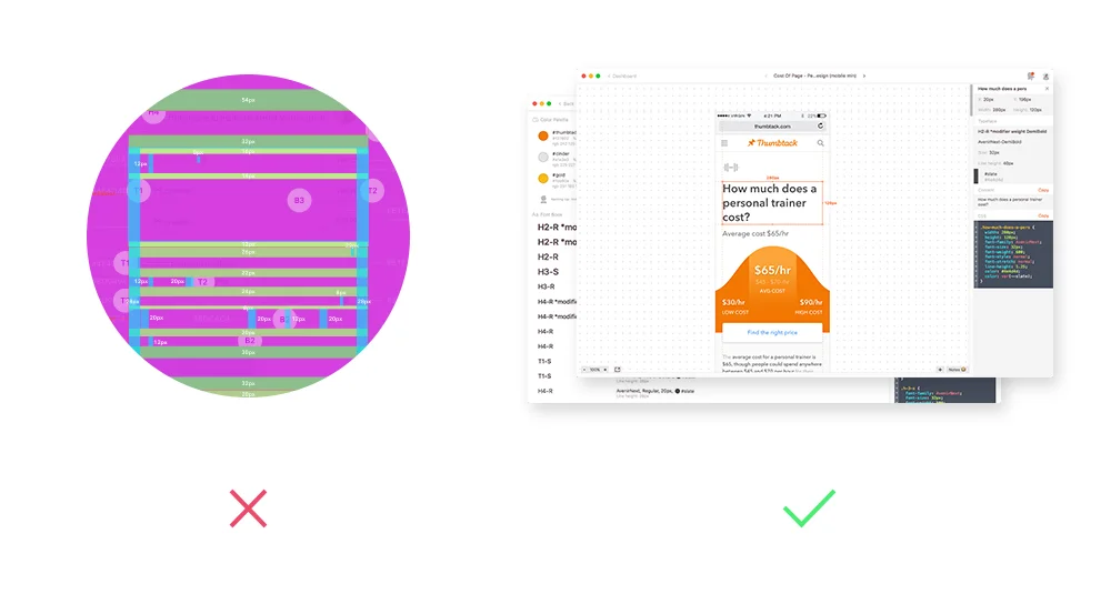 As a team we decided to move away from hand spec'ing our files and adopted to tools like Zeplin & InVision Inspect to help speed up our hand off process. By using Zeplin's styleguide sync feature, developers are able to get CSS for spacing, color names, type annotations & more.